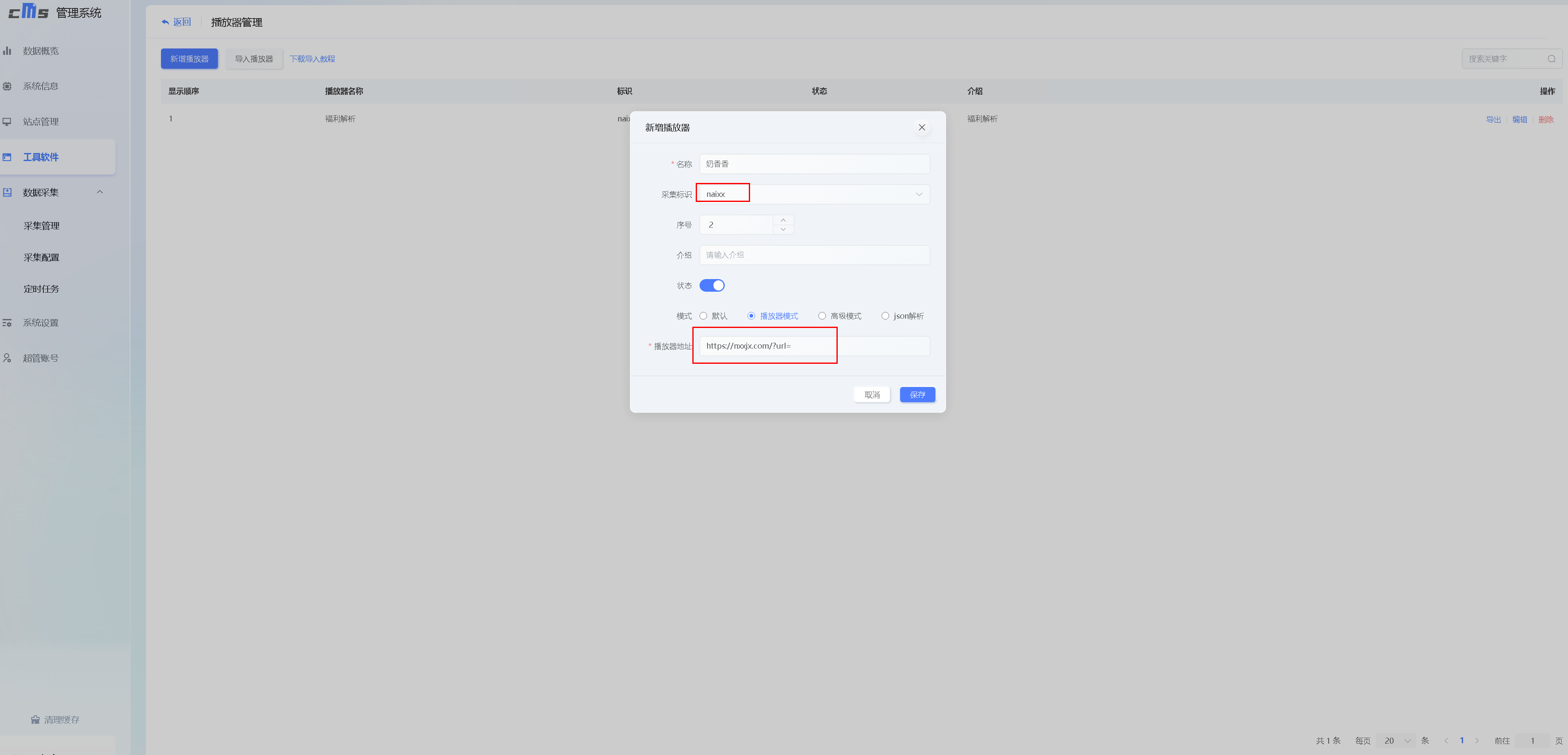 需要先再网站后台添加对应的播放器,才可以实现播放,具体操作流程如下