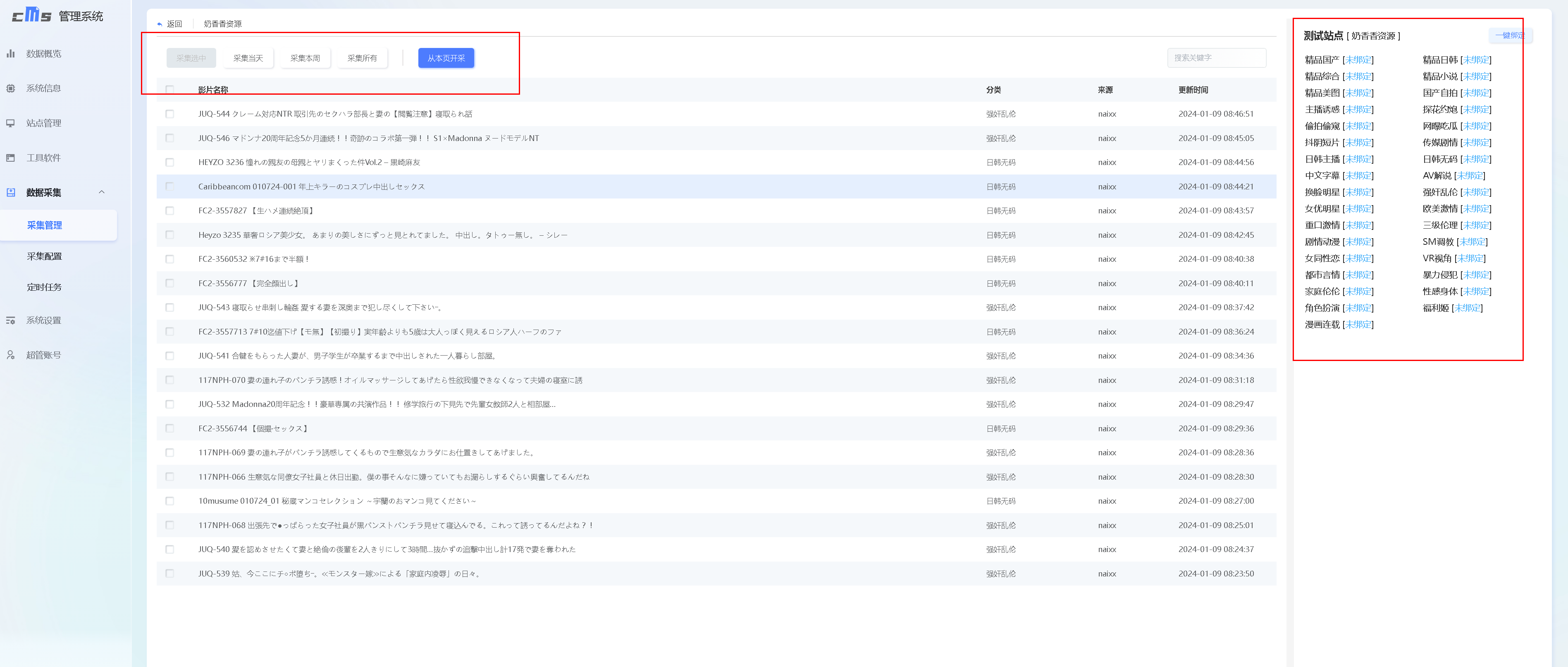 请按以下步骤进行:依次点击【采集】-【资源库管理】,然后依次输入